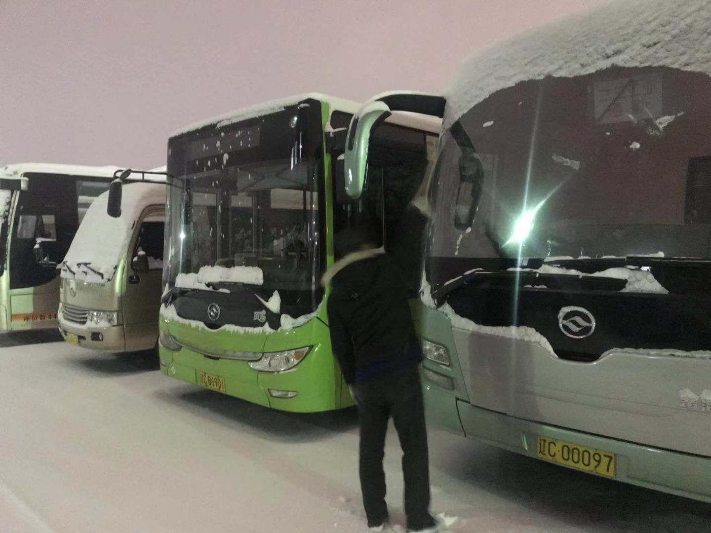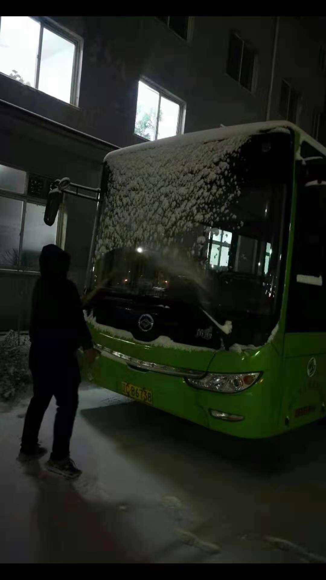 12月6日,我市迎來了2018年的第一場(chǎng)雪,為了確保市民的出行,市交運(yùn)集團(tuán)采取多項(xiàng)措施力保不滯留一名乘客。 為了確保市民安全出行,市交運(yùn)集團(tuán)提前一天進(jìn)行部署,啟動(dòng)雨雪天氣應(yīng)急預(yù)案,在收車后針對(duì)車輛安全機(jī)件進(jìn)行檢查并對(duì)駕駛員進(jìn)行冰雪道路行駛注意事項(xiàng)的教育,要求駕駛員重點(diǎn)做好車輛防寒防凍、保養(yǎng)以及安全行車等方面工作。在晚間提前做好了新能源車輛加氣、充電工作,管理人員值班進(jìn)行晝夜看護(hù),確保一早車輛出車率。