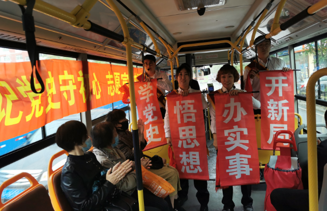 為充分發(fā)揮公交車流動(dòng)性強(qiáng)、宣傳面廣的優(yōu)勢(shì),交運(yùn)集團(tuán)的車廂文藝演出將繼續(xù)走進(jìn)各條公交線路,并在部分公交車廂懸掛國(guó)旗、黨旗,張貼黨史故事,做到學(xué)史明理、學(xué)史增信、學(xué)史崇德、學(xué)史力行,以昂揚(yáng)姿態(tài)奮力開啟全面建設(shè)社會(huì)主義現(xiàn)代化國(guó)家新征程,以優(yōu)異成績(jī)迎接建黨一百周年。