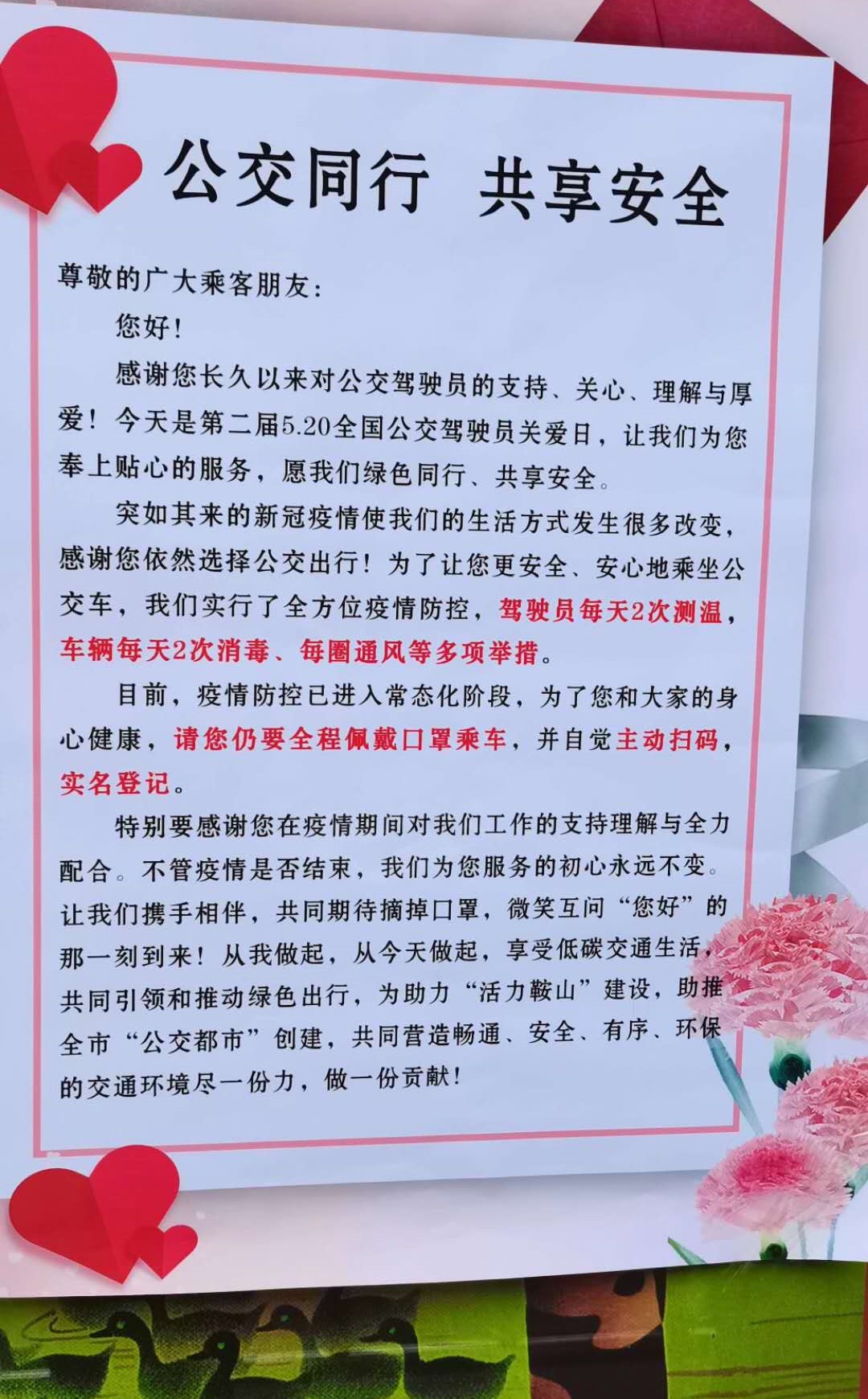 | 很多人都知道5月20日是諧音“我愛你”,但這一天還是全國第二個公交駕駛員關愛日。 鞍山公交駕駛員謝金紅根據自己20年的公交駕駛經驗,首創(chuàng)“321斑馬線禮讓行人法”之后,越來 |