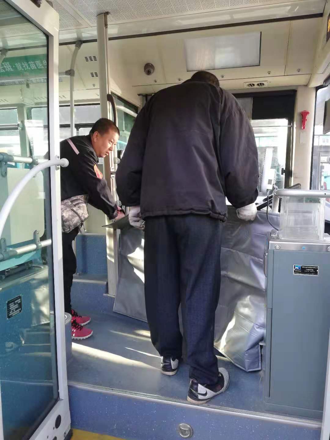 | 關(guān)愛職工冷暖,為職工擋住數(shù)九寒風(fēng)北方的冬天寒風(fēng)刺骨,雖然“南京車”都有暖風(fēng)和鍋爐,乘客們感到車廂溫暖,由于車輛沒有設(shè)計(jì)為駕駛員擋風(fēng)的圍擋,駕駛員因?yàn)榘ぶ伴T,車在運(yùn)營時(shí)上一站的寒氣還沒有散去,就又要開門上下客了,很多駕駛員為了擋風(fēng)保暖,開車時(shí)將小被子蓋在腿上, |
